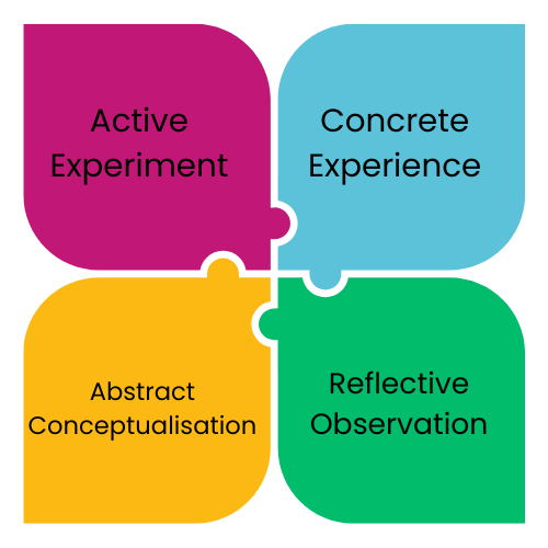 4 Stages: Concrete Experience, Reflective Observation, Abstract Conceptualisation and Active Experiment